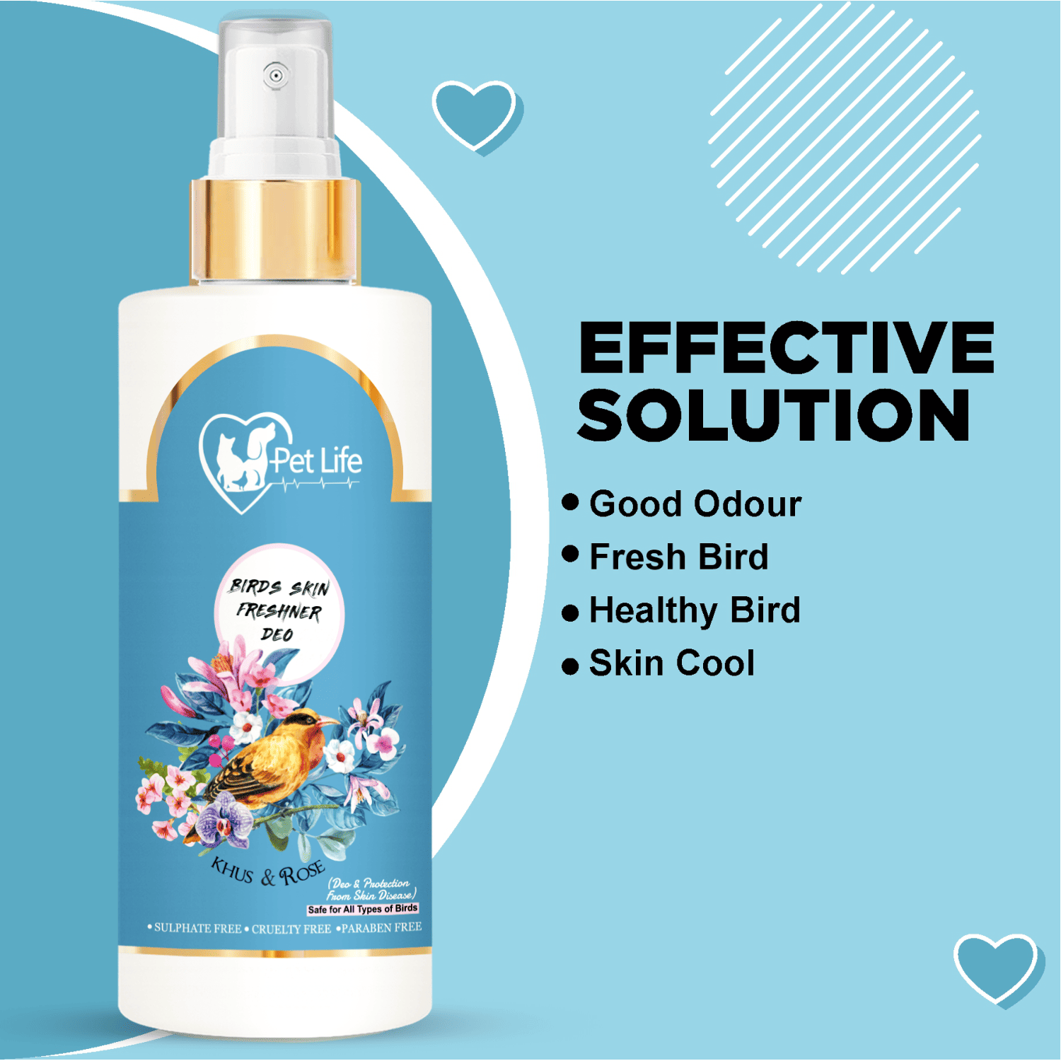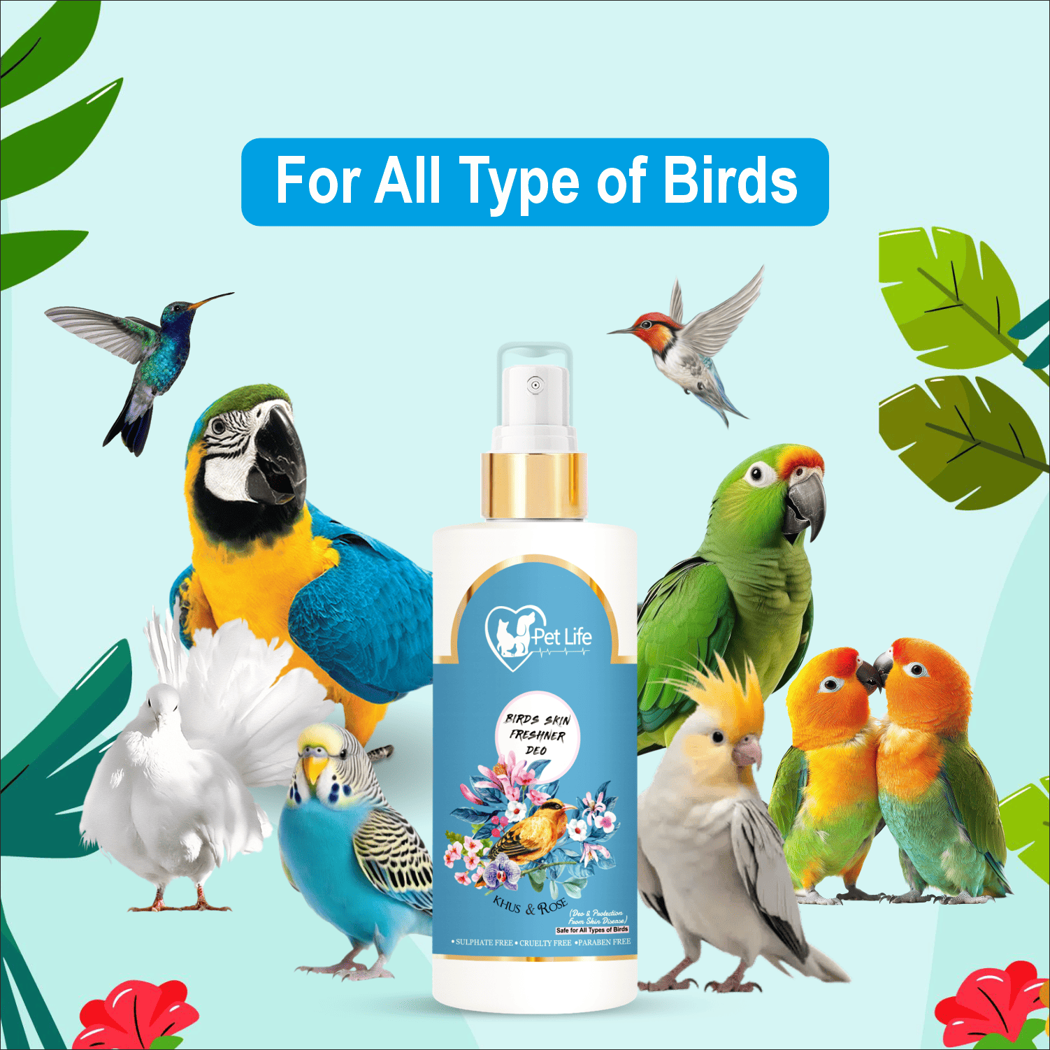 It is effective for all types of birds from small to large ones. Its herbal properties are bird’s friendly and is suitable for all kinds of birds such as Poultry Birds, Parrot, Sparrow, Pigeon, Chick, Hen, Duck etc.