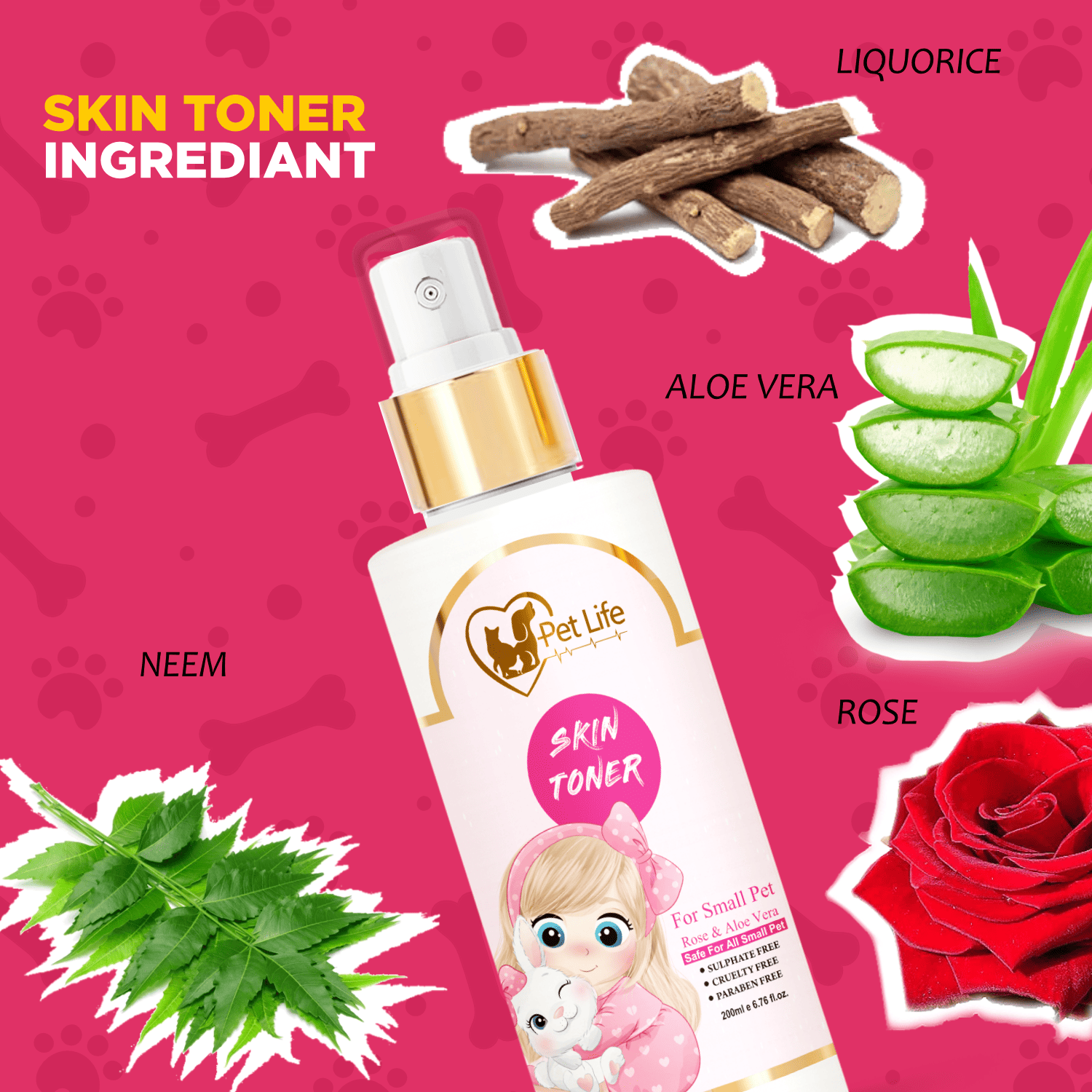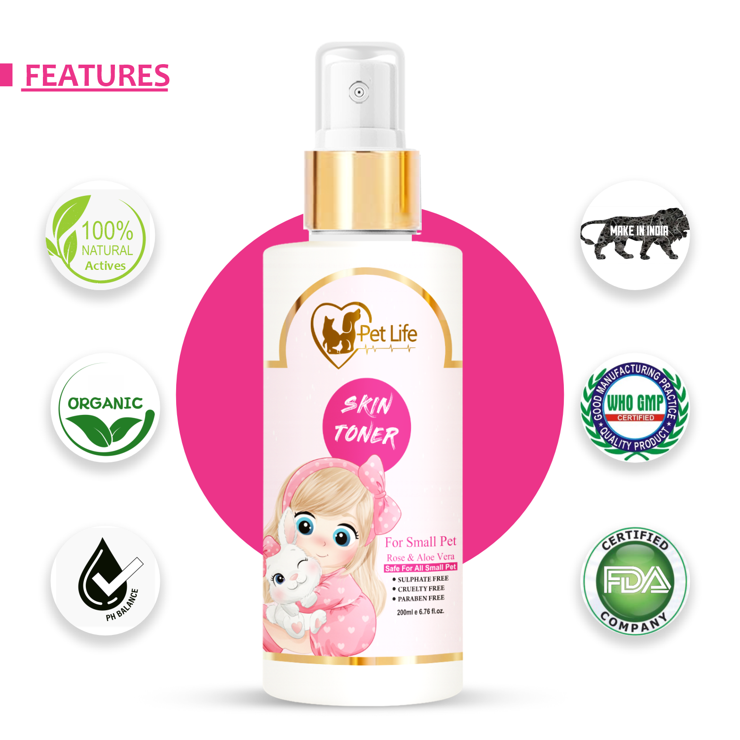 REDUCED SKIN ISSUES: Pet Life Skin toner is a complete package for the skin health and overall wellness of dogs and puppies. Special ‘active’ from rose water and alum augment skin conditioning and nourishment. Multiple natural ingredients composite provide prolonged relief from skin irritation, itching, dandruff and achieve perceptible reduction in the hair fall.